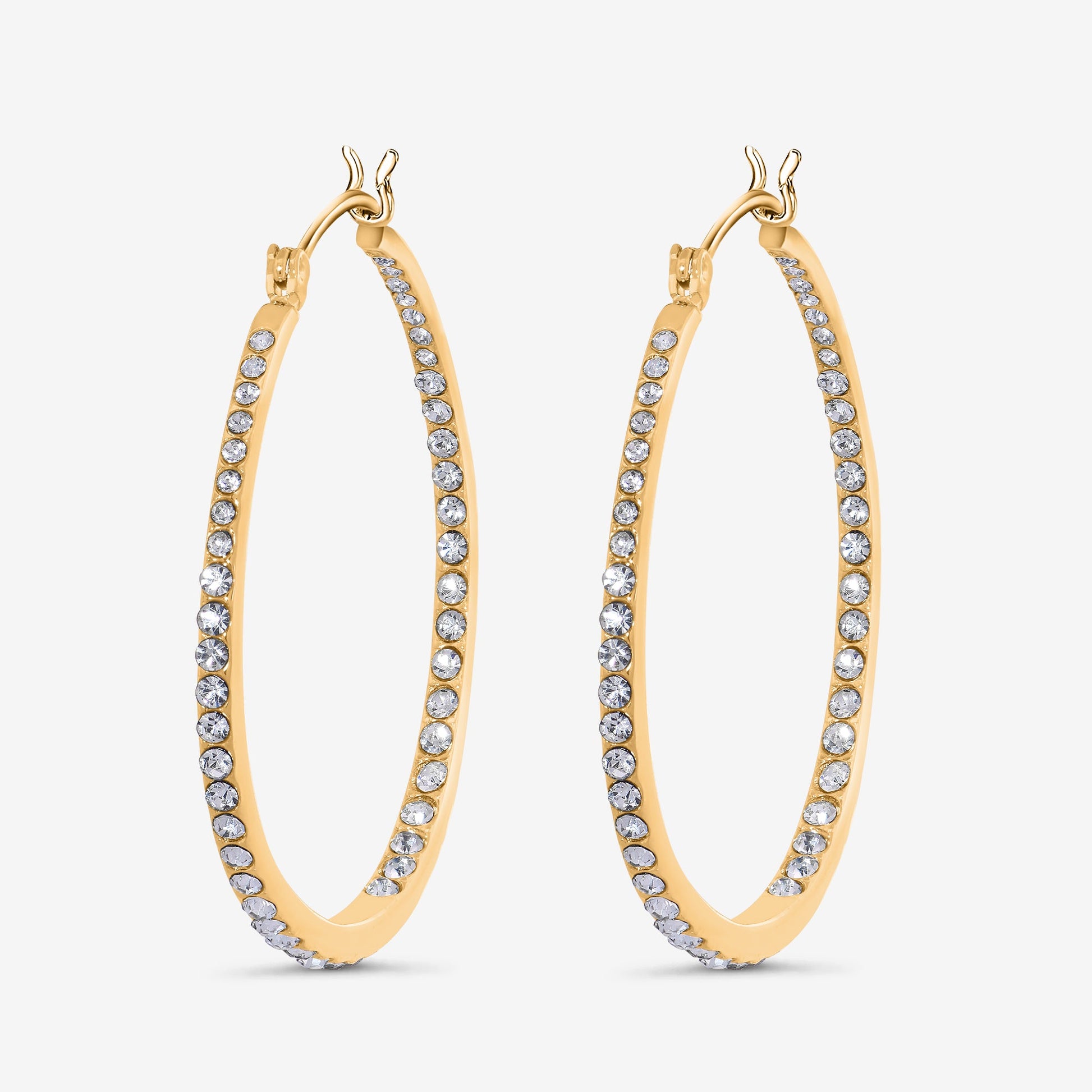 Tillverkade i slitstarkt och hudvänligt kirurgiskt stål 316L med en polerad 18K guldplätering, erbjuder Glitter All Around Large Örhänge både hållbarhet och komfort. De är lätta att bära trots sin storlek, och kristallernas skimer ger en känsla av glamour som inte går obemärkt förbi.